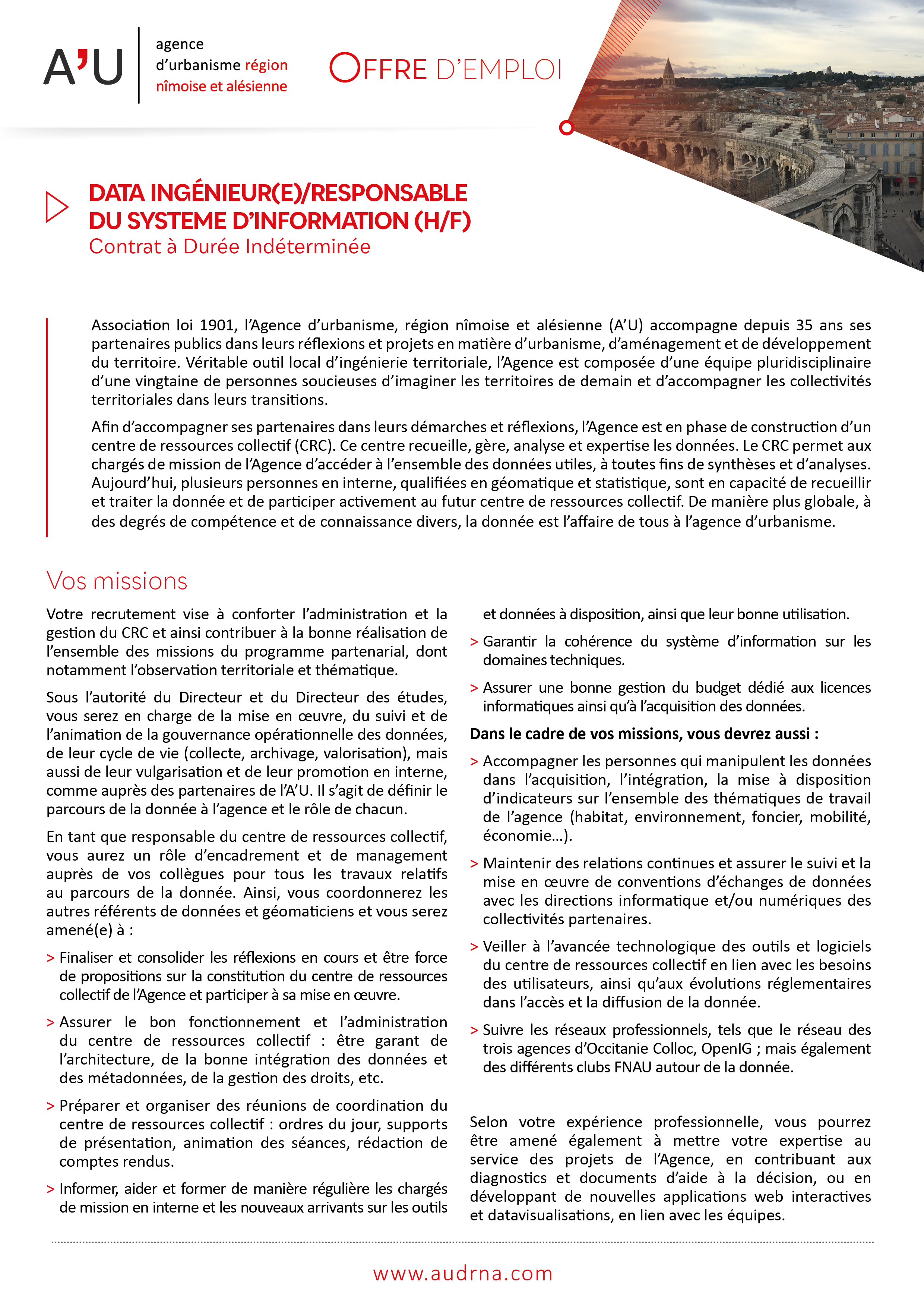 L'A'U recrute un(e) DATA Ingénieur(e) / Responsable du système d'information - CDI Publication : 15 janvier 2026 Retour Télécharger l'offre d'emploi "DATA Ingénieur(e) / Responsable du système d'information"