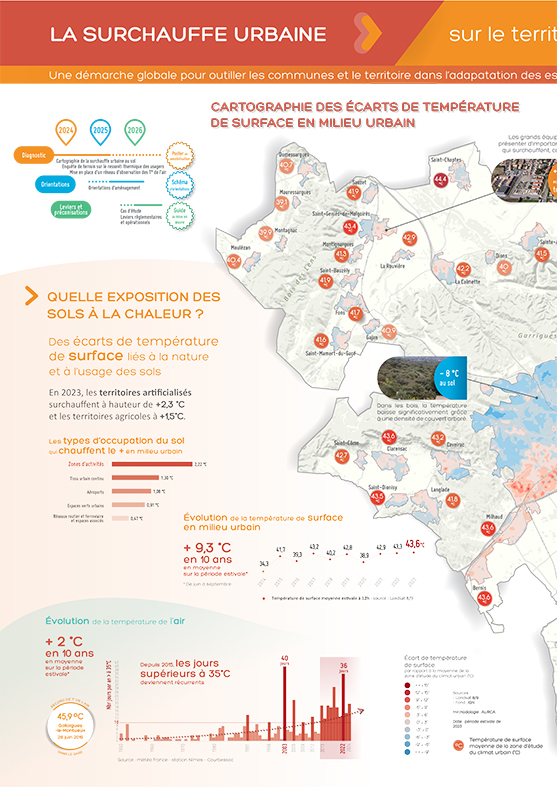L’agence d’urbanisme, région nîmoise et alésienne (A’U) accompagne Nîmes Métropole dans la mise en œuvre de son Plan Climat Air Energie Territorial (PCAET) sur le volet de l’adaptation des villes au changement climatique.