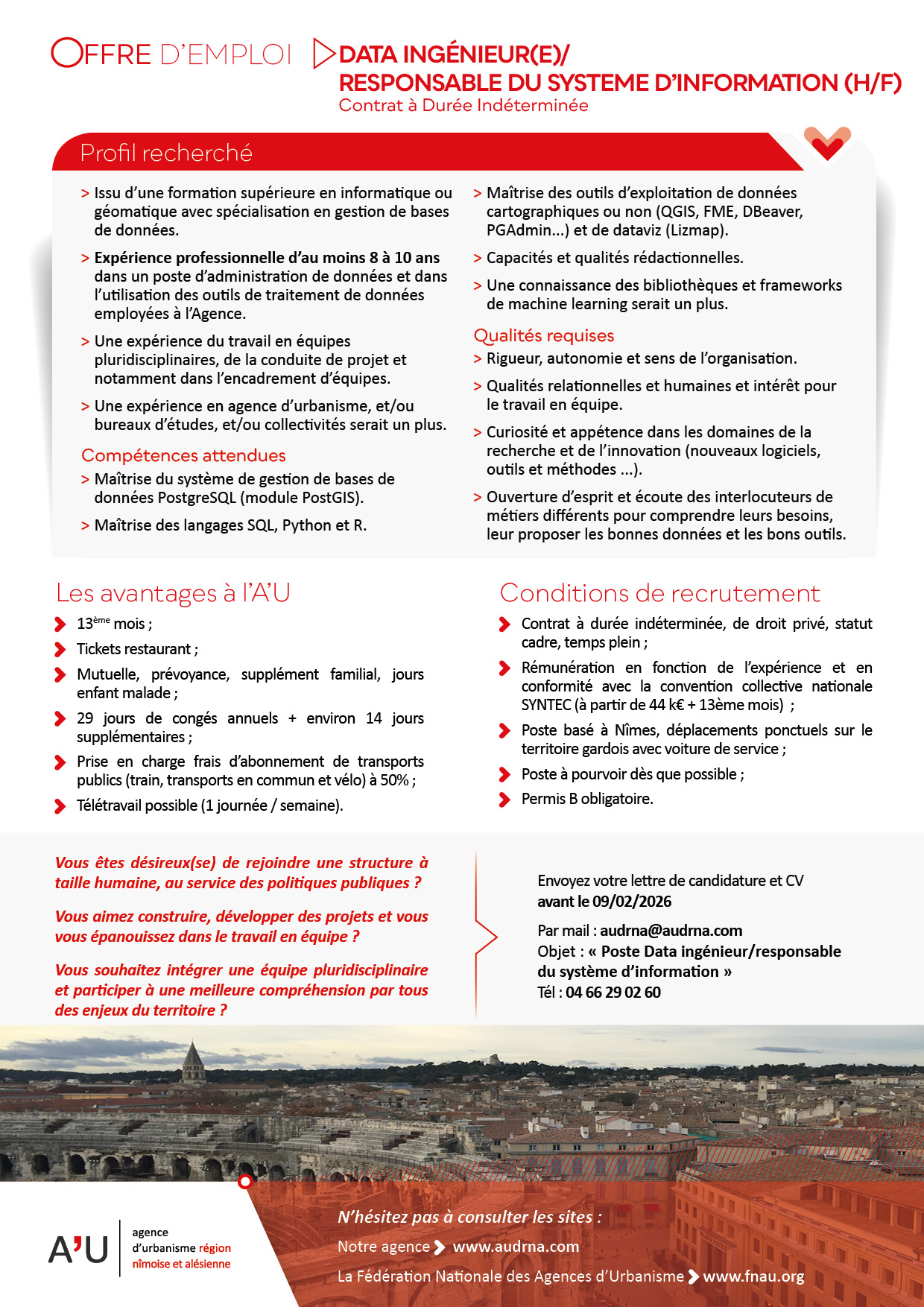 L'A'U recrute un(e) DATA Ingénieur(e) / Responsable du système d'information - CDI Publication : 15 janvier 2026 Retour Télécharger l'offre d'emploi "DATA Ingénieur(e) / Responsable du système d'information"